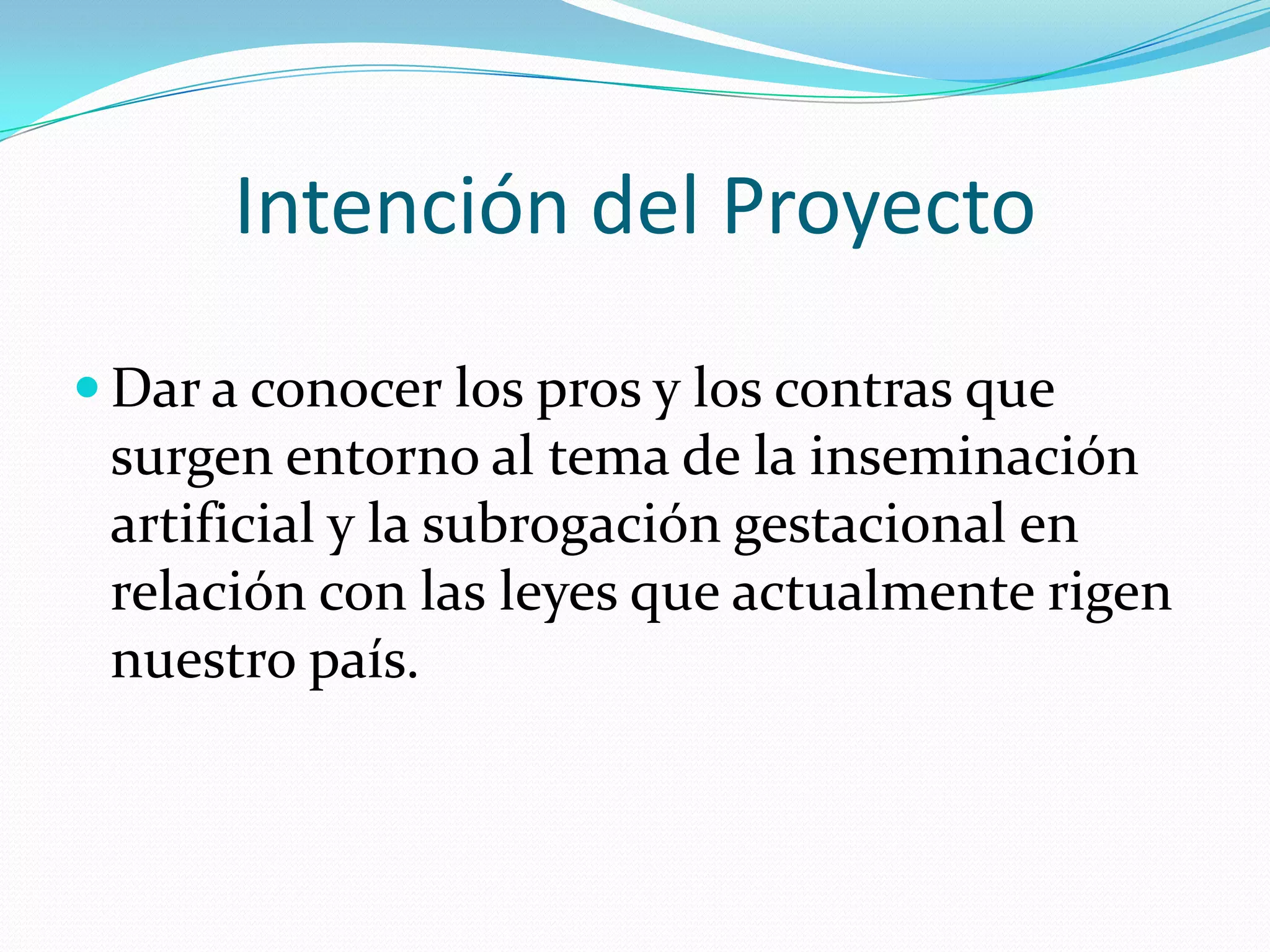 Este documento analiza las leyes y el impacto social de los métodos de reproducción asistida como la inseminación artificial y la subrogación gestacional en México. Cubre las leyes actuales sobre estos temas, los pros y contras de cada método y cómo afectan socialmente, especialmente para parejas homosexuales. El objetivo es dar a conocer estos temas y los problemas sociales que surgen debido a que las leyes no siempre coinciden con la cultura.