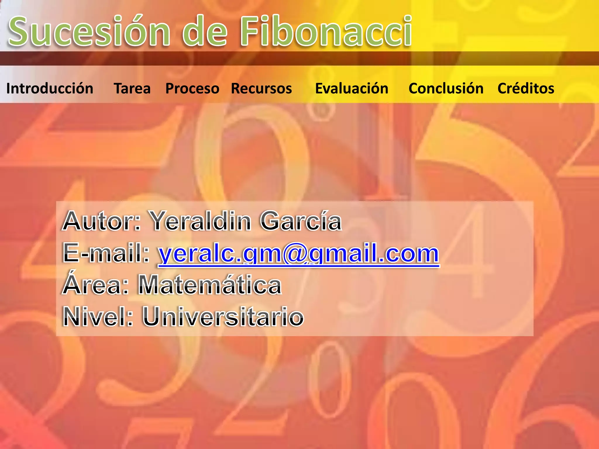 Este documento presenta una webquest sobre los números de Fibonacci. Los estudiantes se organizarán en grupos para investigar aplicaciones de la sucesión en la naturaleza y escribir un ensayo sobre el problema de los conejos de Fibonacci. La webquest incluye recursos en línea para apoyar el aprendizaje y las tareas serán evaluadas para verificar la comprensión de los estudiantes sobre esta fascinante sucesión numérica.