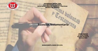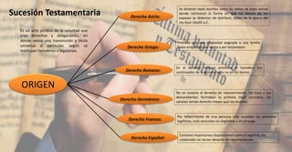 1) El documento describe el origen y evolución histórica de la sucesión testamentaria en diversos sistemas jurídicos como el asirio, griego, romano, germánico y francés, y explica algunas disposiciones clave del derecho español y venezolano. 2) Explica conceptos como la naturaleza jurídica del testamento, las condiciones para su validez, las limitaciones a la facultad de testar, y clasifica los diferentes tipos de testamentos. 3) Detalla los pasos a seguir en la apertura