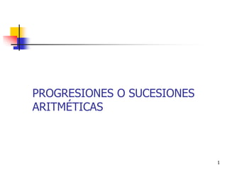 Este documento explica las progresiones aritméticas, que son sucesiones de números donde cada término se obtiene sumando una cantidad constante, llamada diferencia común, al número anterior. Incluye fórmulas para calcular cualquier término, la diferencia común, y el número total de términos dados el primero y último, además de ejemplos para ilustrar los conceptos.