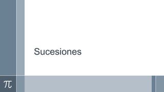 Este documento describe diferentes tipos de sucesiones, incluyendo sucesiones convergentes, divergentes, monótonas, constantes, oscilantes, alternantes y recurrentes. También define el límite de una sucesión y presenta teoremas relacionados con la convergencia de sucesiones, como el teorema de unicidad de límite, el teorema de convergencia monótona y el teorema de Bolzano-Weierstrass.