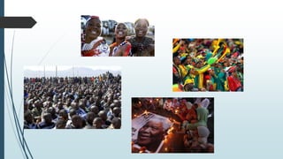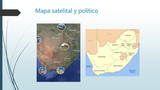Este documento presenta información sobre la demografía, economía, infraestructura, transporte, cultura y desigualdades sociales de Sudáfrica. Algunos detalles clave incluyen: la población de Sudáfrica es de 56.6 millones, con una esperanza de vida de 63.4 años; la economía se basa en la minería, agricultura e industria, con un PIB de US$530 mil millones; y a pesar del progreso desde el apartheid, todavía existe una brecha significativa entre ricos y pobres.