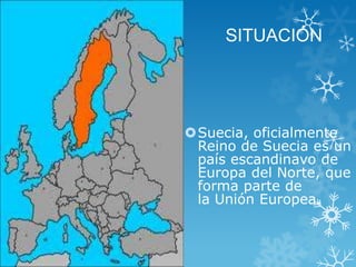 Suecia es un país escandinavo ubicado en Europa del Norte. La capital y ciudad más grande es Estocolmo. Suecia tiene una larga línea costera y un clima que varía desde cuatro estaciones bien definidas en el sur hasta veranos con sol de medianoche en el norte. Algunos símbolos culturales importantes son el Premio Nobel, fundado por un empresario sueco, y el fútbol, el deporte más popular.