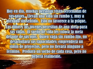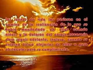 La esencia de un sueño de vida es como un hilo conductor que atraviesa la vida de una persona y le da sentido y continuidad. Si una persona pierde de vista la esencia subyacente de su sueño, su vida puede fragmentarse en muchos pedazos diferentes, lo que no es saludable para el alma. Mientras que los modos específicos de concretar un sueño pueden variar, la esencia fundamental subyacente debe mantenerse como una guía constante.
