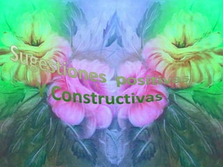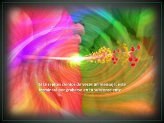 Este documento explica cómo repetir mensajes positivos a uno mismo cientos de veces al día puede grabarse en el subconsciente y guiar el comportamiento. Al repetir frases breves y positivas sobre la seguridad, la actitud mental, la confianza y la felicidad que uno siente, el subconsciente se verá obligado a cumplir la sugestión y desarrollar esas cualidades. Del mismo modo que la publicidad repite mensajes hasta que la gente termina adquiriendo el producto, repetir afirmaciones positivas sobre uno mismo puede conducir a internalizar es