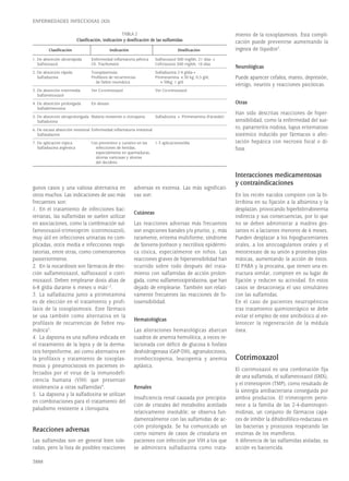 1) El documento describe las sulfamidas, antibióticos derivados de colorantes que inhiben la síntesis de ácido fólico en bacterias. 2) Su mecanismo de acción es competir con el ácido p-aminobenzoico por la enzima dihidropterato sintetasa, inhibiendo la síntesis de folatos en bacterias. 3) Las sulfamidas se utilizan en el tratamiento de infecciones como nocardiosis, toxoplasmosis y en combinación con trimetoprim (cotrimoxazol) para tratar infecciones urinarias y respir