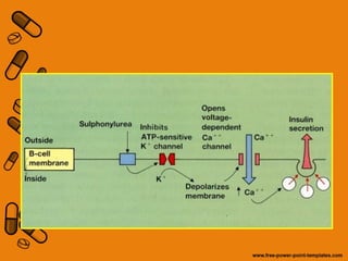 Las sulfonilureas actúan uniéndose a un receptor en las células beta pancreáticas que estimula la liberación de insulina, lo que reduce los niveles de glucosa en ayunas y mejora la sensibilidad a la insulina. Estimulan la secreción de insulina antes y después de las comidas para controlar los niveles de azúcar en la sangre, aunque tienen poco efecto después de las comidas. Mejoran la glucotoxicidad al reducir los niveles de glucosa, lo que mejora la sensibilidad a la insulina en los músculos