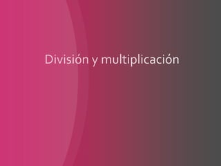La adición es la operación matemática básica de combinar o añadir dos números para obtener un total. Es una operación definida sobre conjuntos de números naturales, enteros, racionales, reales y complejos. La resta es la operación de quitar un número de otro para encontrar la cantidad restante, y es la operación inversa de la suma. La multiplicación encuentra el producto de dos o más cantidades mediante la suma repetida de un número, mientras que la división indica cuántas veces un número (divisor) se encuentra contenido en otro (dividendo).