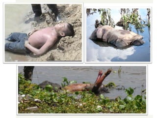 La muerte por sumersión ocurre cuando se reemplaza la inspiración de aire por el ingreso de líquido en las vías respiratorias. Puede ser completa o incompleta, y primaria u secundaria. Presenta signos externos como el hongo de espuma y manchas equimóticas, e internos como pulmones congestionados con marcas de las costillas y presencia de líquido en el estómago.