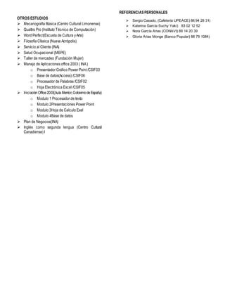 Este documento presenta el currículum de Jessika Arias Monge, una mujer de 43 años de San José, Costa Rica con experiencia en servicio al cliente, área administrativa, educación y teatro. Ella tiene 19 años de experiencia en servicio al cliente y áreas administrativas, así como experiencia trabajando con niños, adultos mayores y personas discapacitadas a través de su trabajo como actriz y promotora teatral. Su educación incluye estudios primarios, secundarios y universitarios inconclusos en enseñanza de inglés, así como estudios técnicos