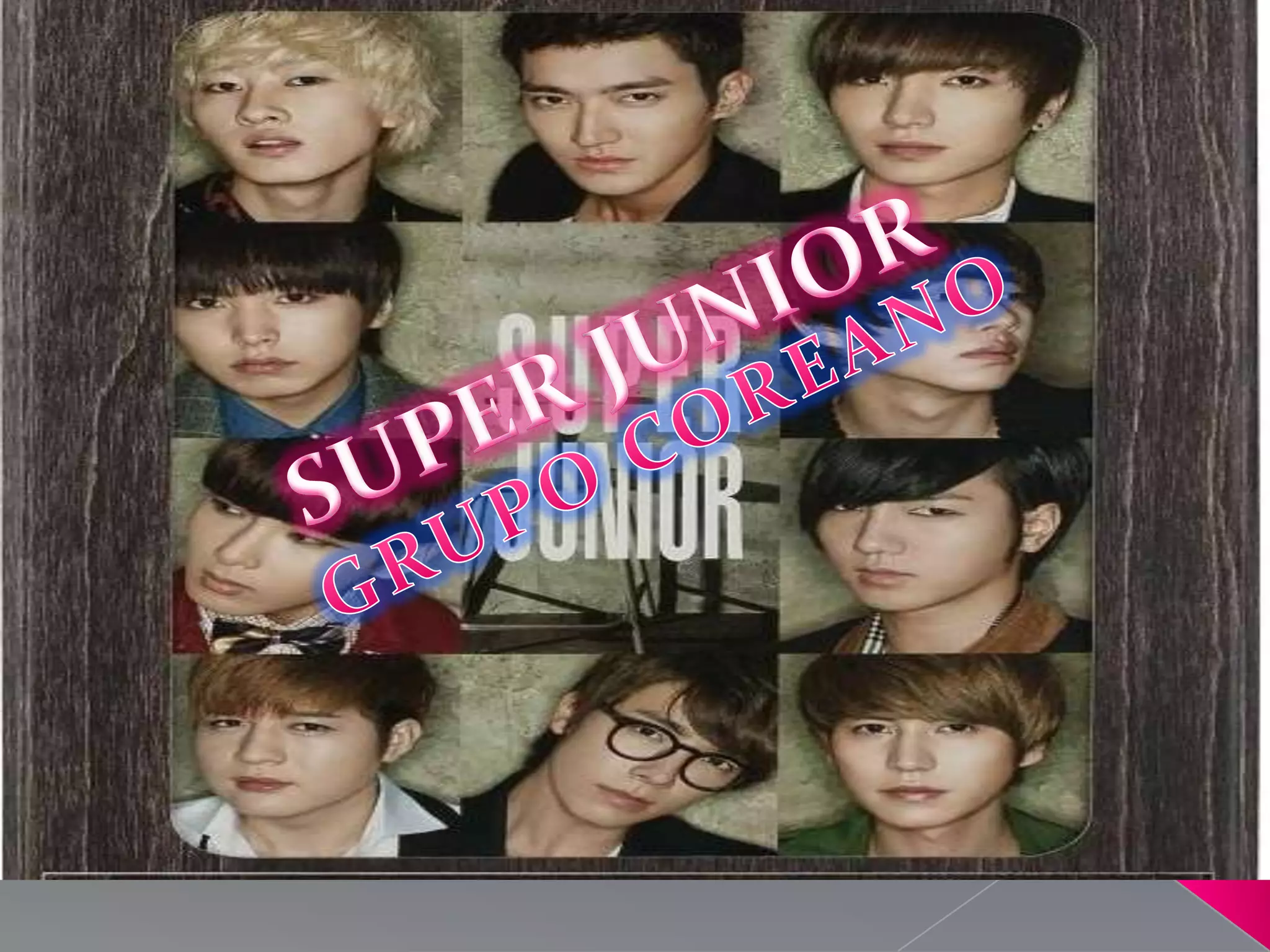 El documento habla sobre el grupo de K-pop Super Junior, incluyendo los nombres y edades de los 10 miembros, sus álbumes, conciertos y biografías. También recomienda páginas de Facebook e informa que el blog puede ser útil para mantenerse actualizado sobre próximos conciertos, álbumes y la vida de los integrantes.