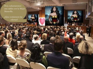 La subasta para una salida con la Mujer Maravilla comienza con una oferta de 1 billón de dólares de Hulk. Luego Ironman ofrece 5 billones y promete otros artículos como un automóvil de Fórmula 1, una casa en Nueva York y un reactor nuclear. Batman supera la oferta con 100 billones, vehículos lujosos, propiedades, contratos gubernamentales y el Batimovil. Al final, el patrón gana la subasta porque dice tener algo que los otros no pueden comprar.