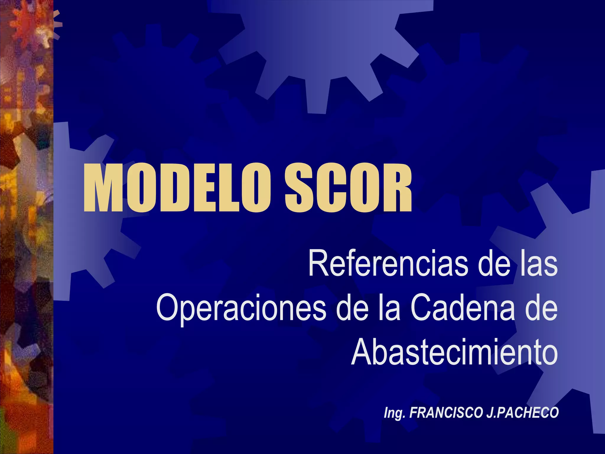 El modelo SCOR es una herramienta para representar, analizar y configurar cadenas de suministro. Fue desarrollado en 1996 y proporciona un marco único que une los procesos de negocio, indicadores de gestión, mejores prácticas y tecnologías para mejorar la eficiencia de la gestión de la cadena de suministro. El modelo analiza cinco procesos primarios: planificación, aprovisionamiento, manufactura, distribución y devolución.