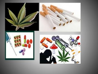 El documento define conceptos clave relacionados con la salud y las sustancias adictivas. Explica que la salud es un estado de bienestar físico, mental y social, no solo la ausencia de enfermedad. Define la adicción como una enfermedad física y emocional que implica dependencia a una sustancia, actividad o relación. También describe los mecanismos biológicos que aumentan el riesgo de adicción si una persona se expone a drogas durante la adolescencia.