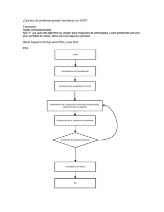 La inteligencia de enjambre es una parte de la inteligencia artificial que se basa en el comportamiento colectivo descentralizado de sistemas como las hormigas. La optimización por enjambre de partículas (PSO) es un método de optimización para funciones no lineales desarrollado por Kennedy y Eberhart, que involucra parámetros como el número de individuos, la mejor posición y velocidad. Los algoritmos de optimización de colonias de hormigas (ACO) siguen la metáfora del rastreo de feromonas de las hormigas para