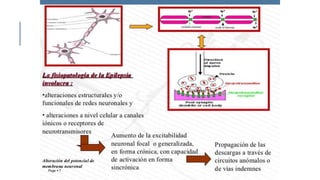 El documento presenta una revisión histórica y científica sobre la epilepsia, analizando su evolución desde percepciones antiguas hasta su comprensión moderna como un trastorno neurológico relacionado con descargas anormales de neuronas. Se discuten las distintas etiologías según la edad, la clasificación de crisis epilépticas y sus manifestaciones clínicas, así como el enfoque terapéutico actual. Además, se especifican los mecanismos fisiopatológicos subyacentes y la importancia de un diagnóstico adecuado para elegir el tratamiento farmacológico correcto.