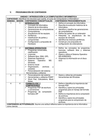 Este sílabo describe una asignatura de Computación e Informática I que se imparte en la carrera de Turismo, Hotelería y Gastronomía. La asignatura tiene una duración de un semestre y cubre temas introductorios sobre informática, incluyendo el uso de herramientas básicas como Word, PowerPoint, creación de blogs y redes sociales. El curso se evalúa a través de exámenes parcial y final, así como prácticas calificadas durante el semestre.