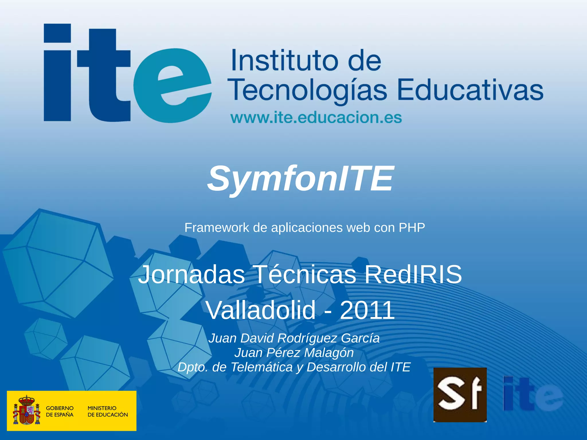 Symfonite es un framework PHP para el desarrollo de aplicaciones web que extiende Symfony, incorporando identidad federada y funcionalidades específicas para facilitar su uso en un contexto organizativo. Su objetivo es optimizar el diseño, construcción y mantenimiento de aplicaciones, garantizando estabilidad y escalabilidad, utilizando patrones de diseño probados. Además, incluye un conjunto de plugins que permiten la gestión de usuarios, permisos y un sistema flexible de acceso.
