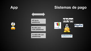 Este documento describe Payment Suite, una suite de código abierto para procesar pagos en línea. Ofrece varias opciones para integrar sistemas de pago como API de plataforma individual, bundles por plataforma o un core bundle con varias plataformas. Explica los pros y contras de cada enfoque, así como eventos, calidad de código, documentación, funcionalidades futuras y cómo contribuir al proyecto de código abierto.