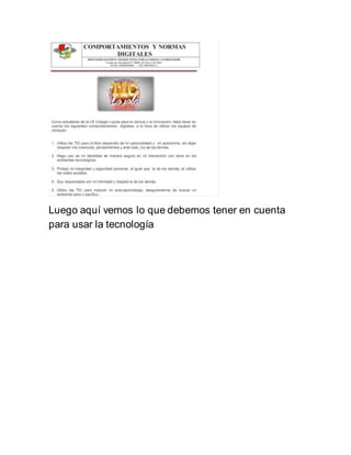 La página presenta una frase inspiradora y destaca la importancia de usar la tecnología de manera responsable. Luego ofrece recursos para compartir información personal, mostrar la hora y fecha, y agregar animación a un sitio web.