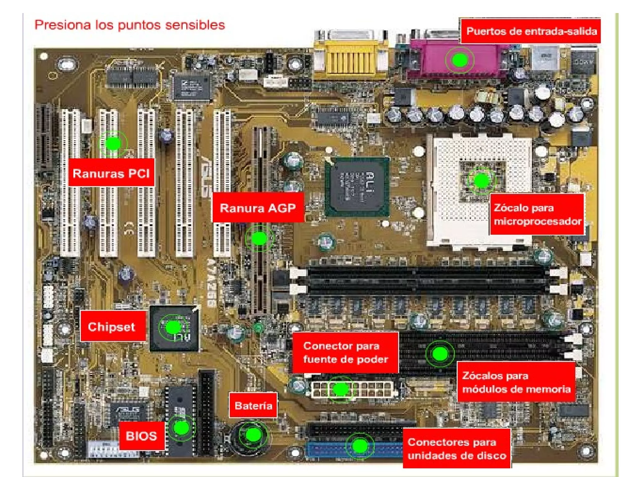 El documento resume los principales componentes de una computadora personal, incluyendo el microprocesador, la tarjeta madre, la memoria RAM, la tarjeta de video y los fabricantes de microprocesadores. Explica que el microprocesador contiene millones de transistores organizados en bloques funcionales y es el elemento clave para ejecutar programas. Además, señala que la tarjeta madre es el punto de comunicación entre el microprocesador y otros componentes, y que la memoria RAM almacena temporalmente los datos que necesita el microprocesador.