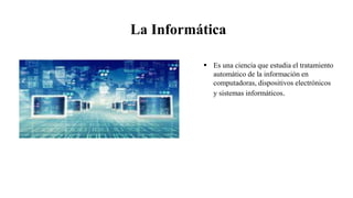 Este documento describe los conceptos básicos de hardware y software. Define la informática, las computadoras y sus principales componentes físicos como la placa madre, placas controladoras y periféricos. Explica que el hardware son los componentes físicos de una computadora, mientras que el software incluye los programas y datos necesarios para su funcionamiento.