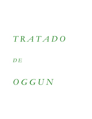 Este documento describe los detalles de una carga de refuerzo para el orisha Oggun, incluyendo los ingredientes para el caldero de Oggun, las herramientas que lo acompañan, y los rituales para consagrarlo y fortalecer su poder.