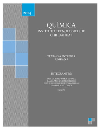 Este documento presenta un resumen de varios temas fundamentales de química como los modelos atómicos de Dalton, Thomson, Rutherford y Bohr, las propiedades de la materia incluyendo masa, energía y los estados de la materia, y las diferencias entre elementos, compuestos y mezclas. El documento fue escrito por un equipo de estudiantes para una asignación y busca proporcionar información básica pero concisa sobre estos importantes conceptos químicos.