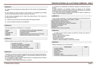El documento contiene varios ejercicios sobre conceptos básicos de contabilidad como el Plan General de Contabilidad para PYMES, principios contabilidad, cuentas anuales y elementos que componen el balance de situación y la cuenta de pérdidas y ganancias. Los ejercicios piden identificar cuentas contables, grupos contables, relacionar conceptos con definiciones y realizar asientos contables.