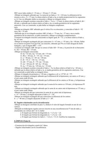 Este documento presenta el tema 4 sobre triángulos y ángulos relacionados con la circunferencia de la asignatura de Dibujo Técnico I. Incluye definiciones de triángulos, líneas y puntos notables, y tipos de ángulos relacionados con la circunferencia. También propone actividades prácticas como construir triángulos a partir de diferentes datos y calcular ángulos en polígonos regulares inscritos en una circunferencia.