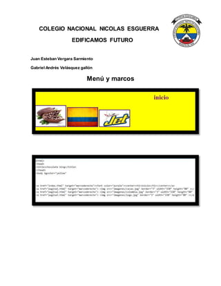 El Colegio Nacional Nicolás Esguerra está construyendo el futuro. Juan Esteban Vergara Sarmiento y Gabriel Andrés Velásquez gallón presentan un menú y marcos para la institución.
