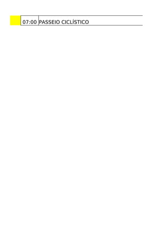 El documento presenta el programa de actividades para los Juegos Internos 2012 en la Escuela Pe. Jerónimo. Incluye una tabla con el cronograma de eventos deportivos que se realizarán entre el 4 y el 7 de junio, así como tablas con la distribución de equipos en diferentes categorías y grupos.