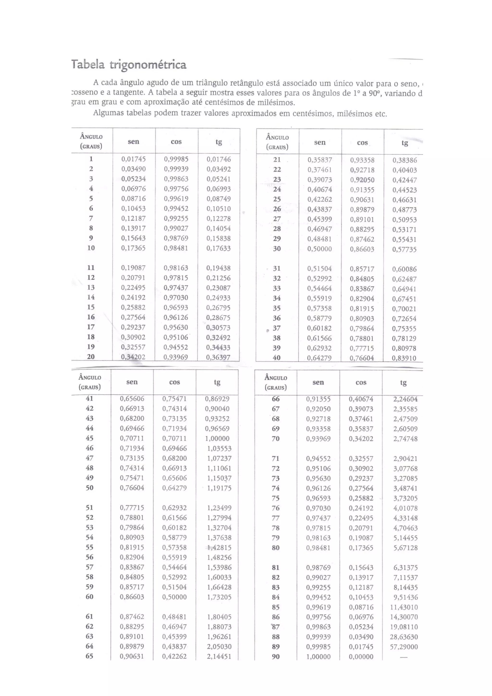 Tabela trigonométrica