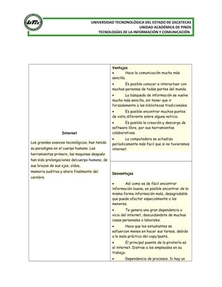 El documento presenta una comparación entre Internet, Extranet e Intranet. Explica que Internet permite comunicación global pero también riesgos como información no deseada, mientras que una Extranet permite compartir información selectiva con socios externos y una Intranet ofrece acceso a información sólo a empleados internos de una organización de manera económica y segura.