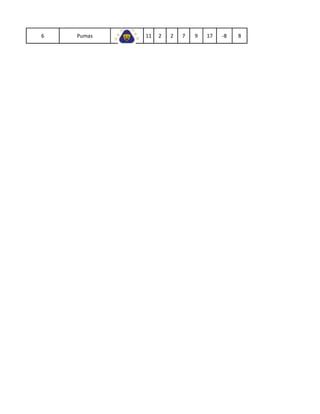El documento presenta las tablas de posiciones de 3 grupos en una liga de fútbol mexicana. En el Grupo 1, Toluca lidera con 25 puntos. En el Grupo 2, Monterrey y Morelia comparten la cima con 23 y 22 puntos respectivamente. En el Grupo 3, Santos encabeza con 21 puntos.