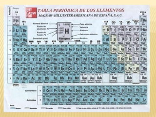 El documento resume brevemente la historia del desarrollo del sistema periódico desde las primeras clasificaciones de elementos en grupos hasta la versión moderna ordenada por número atómico. Explica las propiedades de los metales, no metales y gases nobles, y describe algunas propiedades periódicas clave como el radio atómico, la energía de ionización y la electronegatividad.