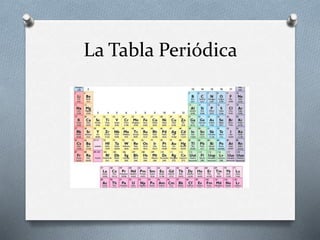 El documento describe la historia y desarrollo de la tabla periódica de los elementos. Explica que John Newlands observó una periodicidad en las propiedades de los elementos en 1864, pero que fue Mendeleev quien propuso una versión más completa de la tabla periódica en 1869 que permitió predecir propiedades de elementos aún no descubiertos. Más tarde, en 1913, Moseley ordenó los elementos según su número atómico y estableció la ley periódica. La tabla periódica actual clasifica los elementos en grupos y períodos