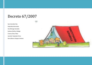 Este decreto establece las directrices para el proceso educativo en la etapa de educación infantil. Define los principios, objetivos y estructura del currículo, así como las competencias básicas que los estudiantes deben desarrollar. También describe las medidas de apoyo como la coordinación, formación del personal, investigación e innovación educativa.