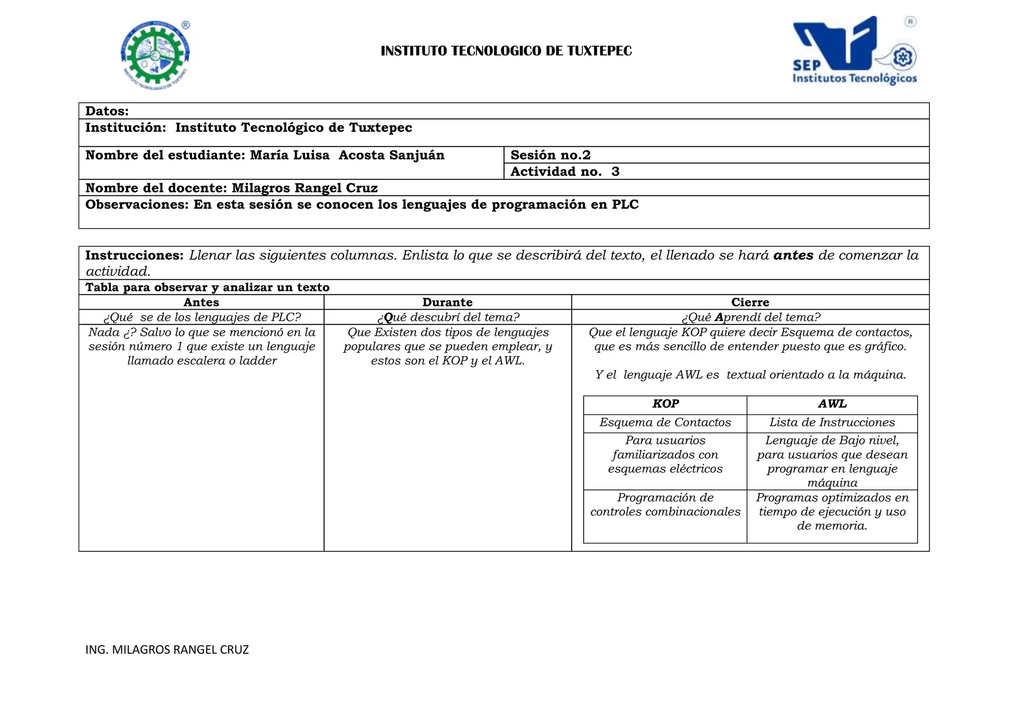 Esta sesión trata sobre los lenguajes de programación en PLC. Se mencionan dos lenguajes populares: KOP (Esquema de Contactos), que es gráfico y más sencillo de entender, y AWL (Lista de Instrucciones), que es textual y orientado a la máquina. KOP es para usuarios familiarizados con esquemas eléctricos, mientras que AWL permite programar en lenguaje de máquina y optimizar el tiempo de ejecución y uso de memoria.