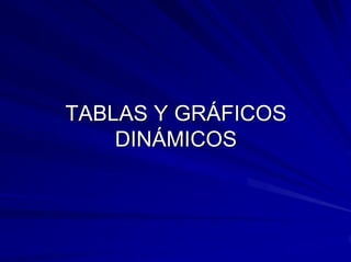 Este documento describe cómo crear tablas y gráficos dinámicos en Excel. Explica que las tablas dinámicas permiten modificar fácilmente una lista de elementos y que los gráficos dinámicos permiten analizar datos. Luego guía al lector paso a paso a través del asistente para crear una tabla o gráfico dinámico, incluida la selección de datos, la configuración de campos y opciones, y la actualización de la tabla o gráfico cuando los datos cambien.