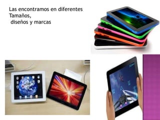 Las tablets se han vuelto populares para el entretenimiento y el trabajo debido a su portabilidad, pantalla táctil y batería de larga duración. Si bien ofrecen movilidad y facilidad de uso, su escritura y precio son más lentos y altos respectivamente en comparación con las computadoras portátiles.
