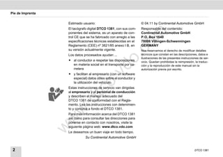 El documento proporciona instrucciones para el manejo del tacógrafo digital DTCO 1381. Explica los diferentes modos de funcionamiento, las tarjetas de tacógrafo y sus funciones, así como los procedimientos para realizar entradas manuales, descargar datos e imprimir documentos. También incluye información sobre las disposiciones legales y el mantenimiento del dispositivo.