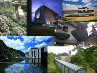 Tadao Ando es un arquitecto japonés autodidacta nacido en 1941 que estableció su estudio en 1969. Es conocido por diseñar estructuras geométricas simples que utilizan materiales como concreto, acero y vidrio, creando espacios trascendentales mediante el uso de la luz natural. Ando es considerado el mayor arquitecto vivo del mundo por sus obras que destacan por la simplicidad y calidad constructiva.