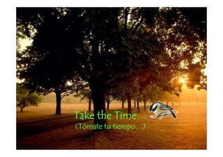 El documento destaca la importancia de dedicar tiempo a diversas actividades que enriquecen la vida, como amar, reír, llorar, leer, escuchar, pensar, jugar, soñar y vivir. Cada acción se presenta como esencial para el bienestar y el crecimiento personal. Se concluye con una invitación a compartir el mensaje con amigos para disfrutar del camino de la vida.