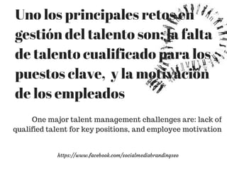 La gestión del talento enfrenta desafíos como la falta de personal cualificado y la motivación de los empleados. La inversión en talento está relacionada con la productividad empresarial, siendo el talento responsable del 60% de la misma. El éxito futuro de las empresas dependerá de un compromiso estratégico en el desarrollo y impulso del talento.