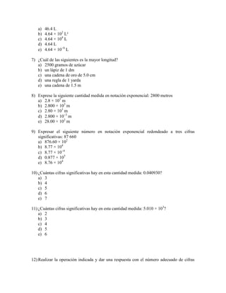 Este documento presenta 20 problemas de conversión de unidades y cálculos con unidades, incluyendo conversiones entre kilómetros y metros, microgramos a kilogramos, kilómetros por minuto a metros por segundo, y operaciones como sumas y divisiones con unidades. El documento proporciona un taller práctico de nivelación sobre conceptos físicos básicos de unidades y conversión.