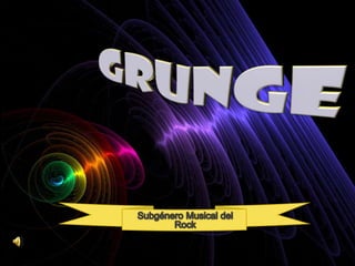 El grunge es un subgénero del rock que se originó a finales de los 80 en Seattle. Se caracteriza por guitarras distorsionadas, melodías repetitivas y batería pesada con influencias de hard rock, punk y heavy metal. Bandas pioneras como Green River, Soundgarden y Nirvana mezclaron estos estilos y ayudaron a popularizar el grunge.