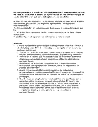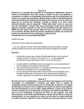 2) Nicolás decide solicitar por escrito los juicios de evaluación amparándose en el Reglamento de Aprendices del SENA.