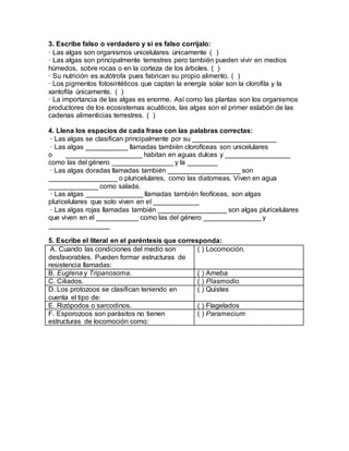 Este documento presenta un taller de reconocimiento de los reinos Monera y Protista. El taller incluye ejercicios para identificar bacterias y características de cianobacterias y algas. También cubre protozoos y sus mecanismos de locomoción y formación de quistes. El objetivo es comprender los criterios de clasificación biológica de estos grupos.