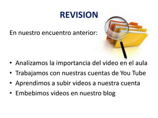 El documento presenta una guía sobre cómo crear y compartir presentaciones de PowerPoint de manera colaborativa en línea. Explica cómo usar el servicio Slideshare para subir presentaciones y cómo insertarlas en un blog mediante código de inserción. También incluye consejos sobre diseño de diapositivas como el uso de tipografía, imágenes, diagramas y contenido adecuado.